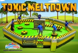 Toxic Meltdown is our 8-player action Wipeout Multiplayer game, which challenges your stamina, agility, and reactions. Not one but two spinning boom arms try to knock you off your podium. You have to duck underneath or jump over the foam boom. Who will be the last one standing?